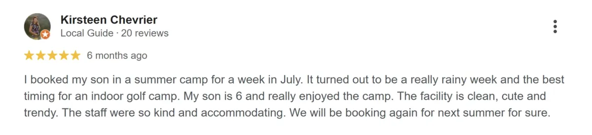 With fun golf lessons, professional coaching, and exciting daily activities, this camp is perfect for kids who want to learn, improve, and enjoy the game of golf.